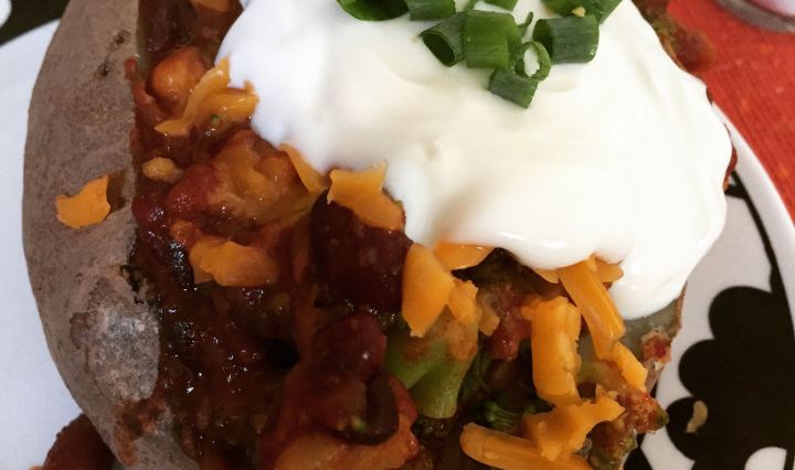 The Catholics amongst you may be tempted to head to confession after eating this deluxe baked potato. It’s that good. And filling. And under 400 calories. Deal with the devil? Naw, just good old fashioned substituting vegetarian and low-fat versions … Continue reading Sinfully Delicious Chili Baked Potato