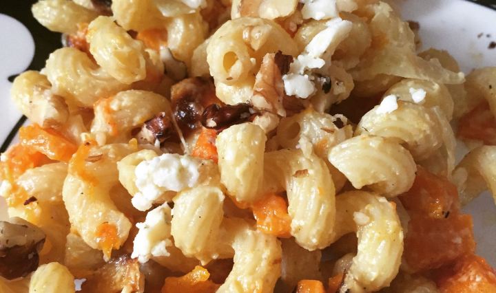 Creamy Squatternut Bosh* Cavatappi with Blue Cheese & Walnuts